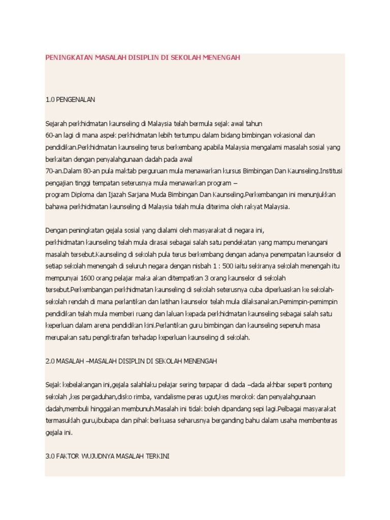 Pada berbagai bidang khususnya kehidupan berorganisasi, faktor manusia merupakan masalah utama disetiap kegiatan yang ada didalamnya. Berdasarkan latar belakang masalah tersebut diatas, maka dapat ditarik beberapa rumusan masalah untuk membatasi penjabaran sebagai berikut: So please help us by uploading 1 new document or like us to download Salah satu tugas yang dilaksanakan guru disekolah adalah memberikan pelayanan kepada siswa agar mereka menjadi peserta didik yang selaras dengan tujuan sekolah. 2.0 jurnal refleksi 2.1 masalah pertama (masalah disiplin pelajar)perkararefleksi kenal pasti masalahsaya mengajar di kelas tingkatan 4e2 sekolah menengah kebangsaan long ghaffar 2.
