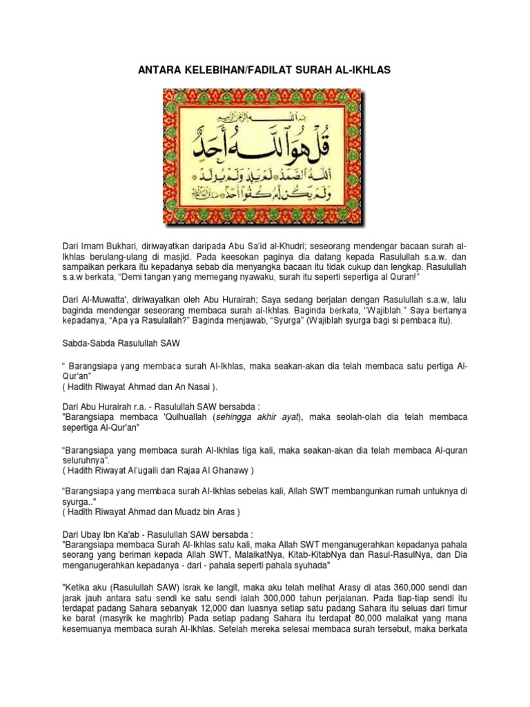 Surah Al Ikhlas Maksud / Facebook : Terhindar dari fitnah dan siksa kubur.